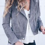 style leather leggings for a night out with a gray suede moto jacket over a white camisole as seen on pinterestingplans