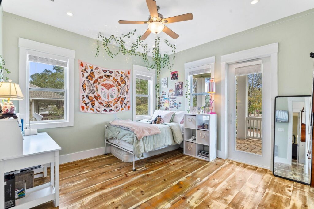One of the biggest structural changes we made was enclosing the upper front porch that faced the road. By closing it in, we were able to create an additional bedroom and create square footage at a lower price than market value..